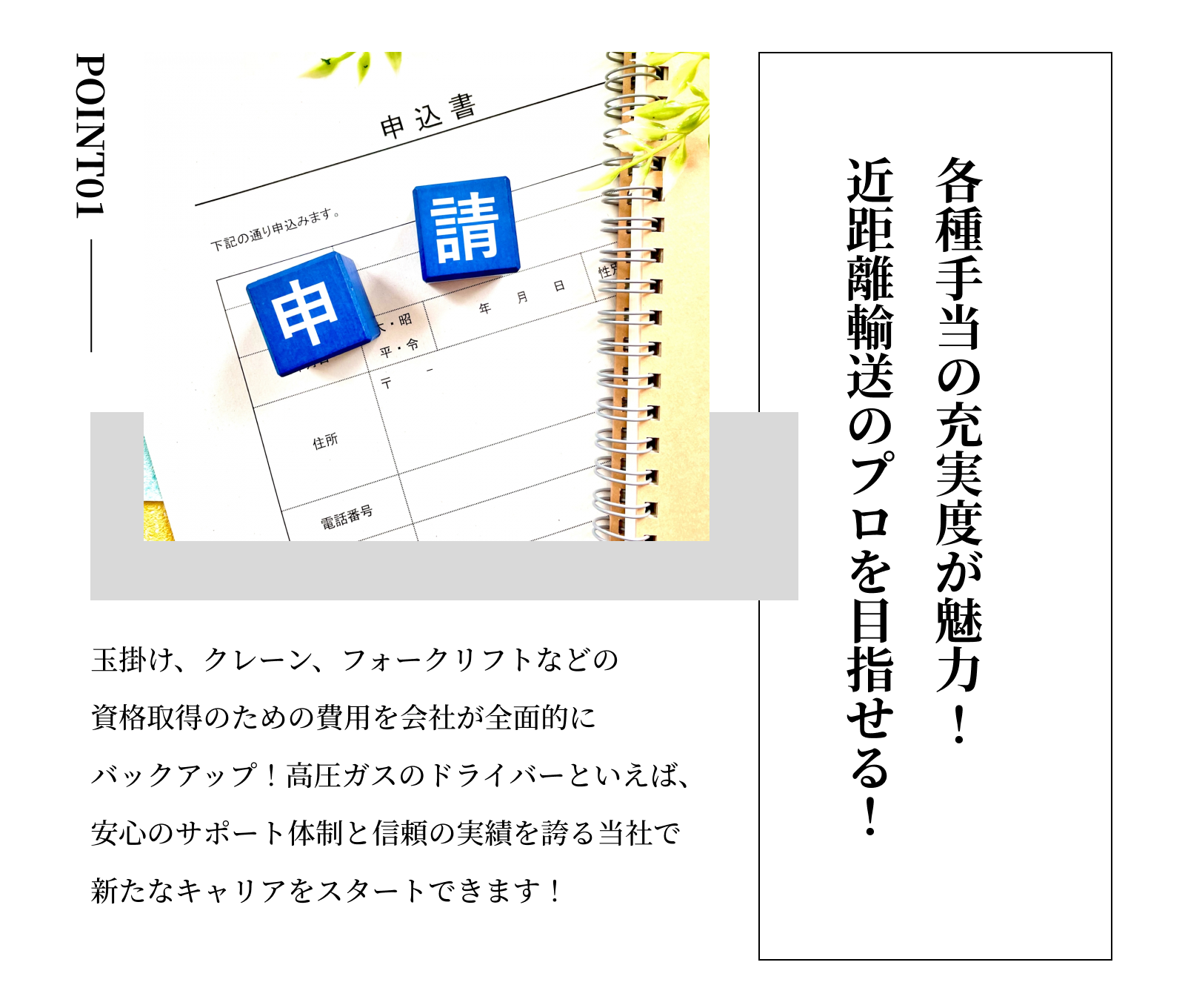 下記の資格を持っていれば経験不問・未経験OK! ◇必須 準中型免許または改正前の普通自動車運転免許(AT限定不可) |